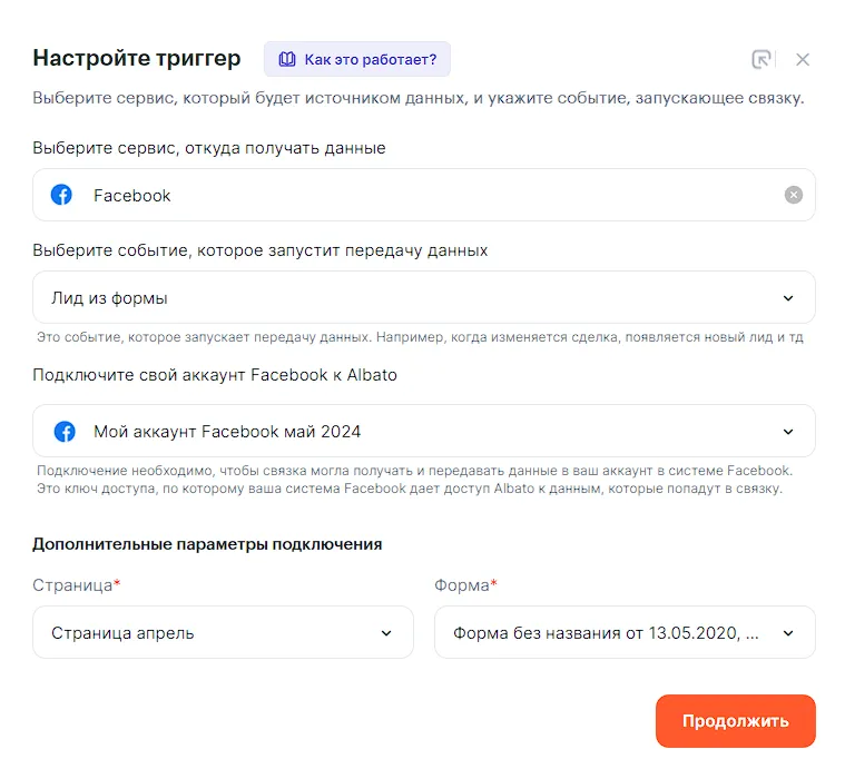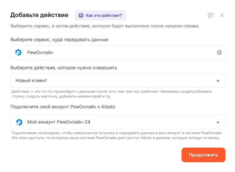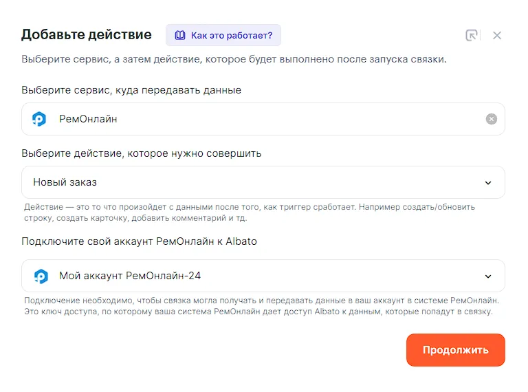 Подключение РемОнлайн к Albato и пример связки с Facebook