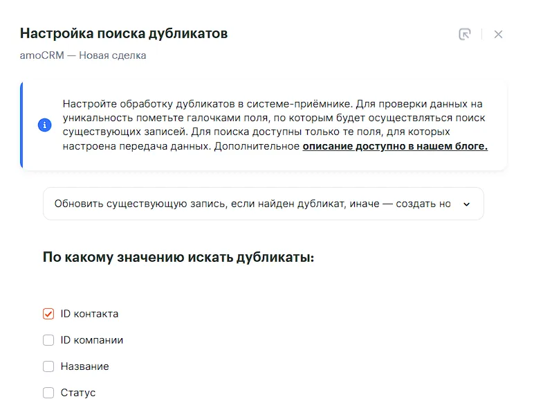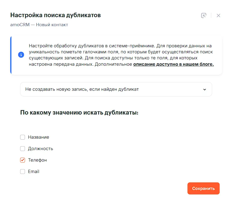 Нажимаем Сохранить и переходим к шагу проверки на дубли для сделок.