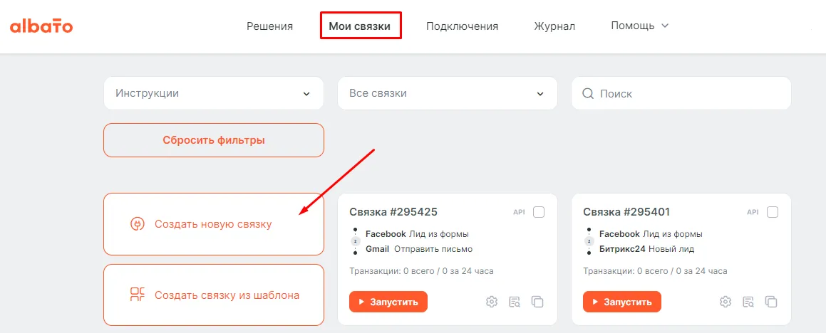 Создаем связку, переходим в раздел Мои связки – Создать новую: