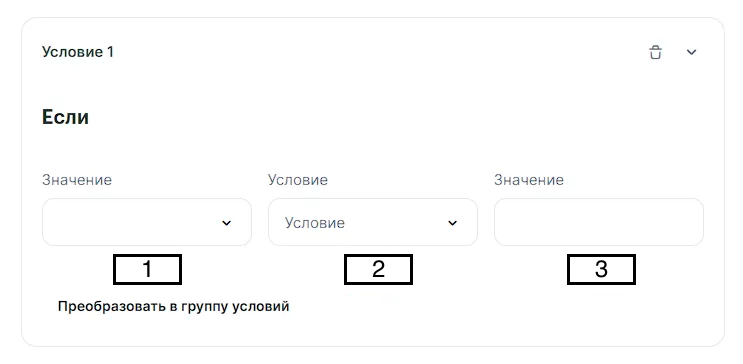 Для этого нажмите кнопку «Добавить условие» и заполните три поля: