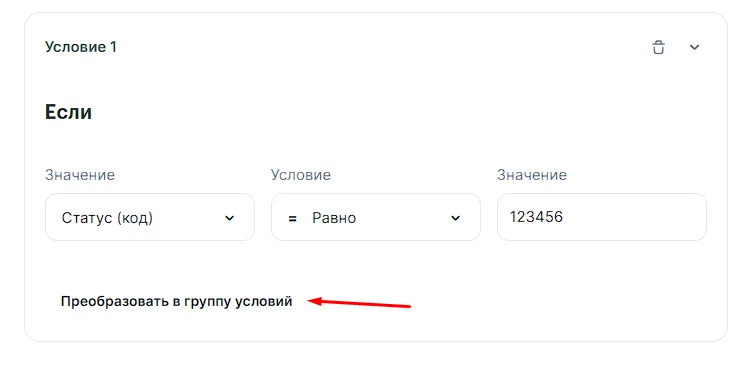 Нажмите «Преобразовать в группу условий» и настройте дополнительное условие: