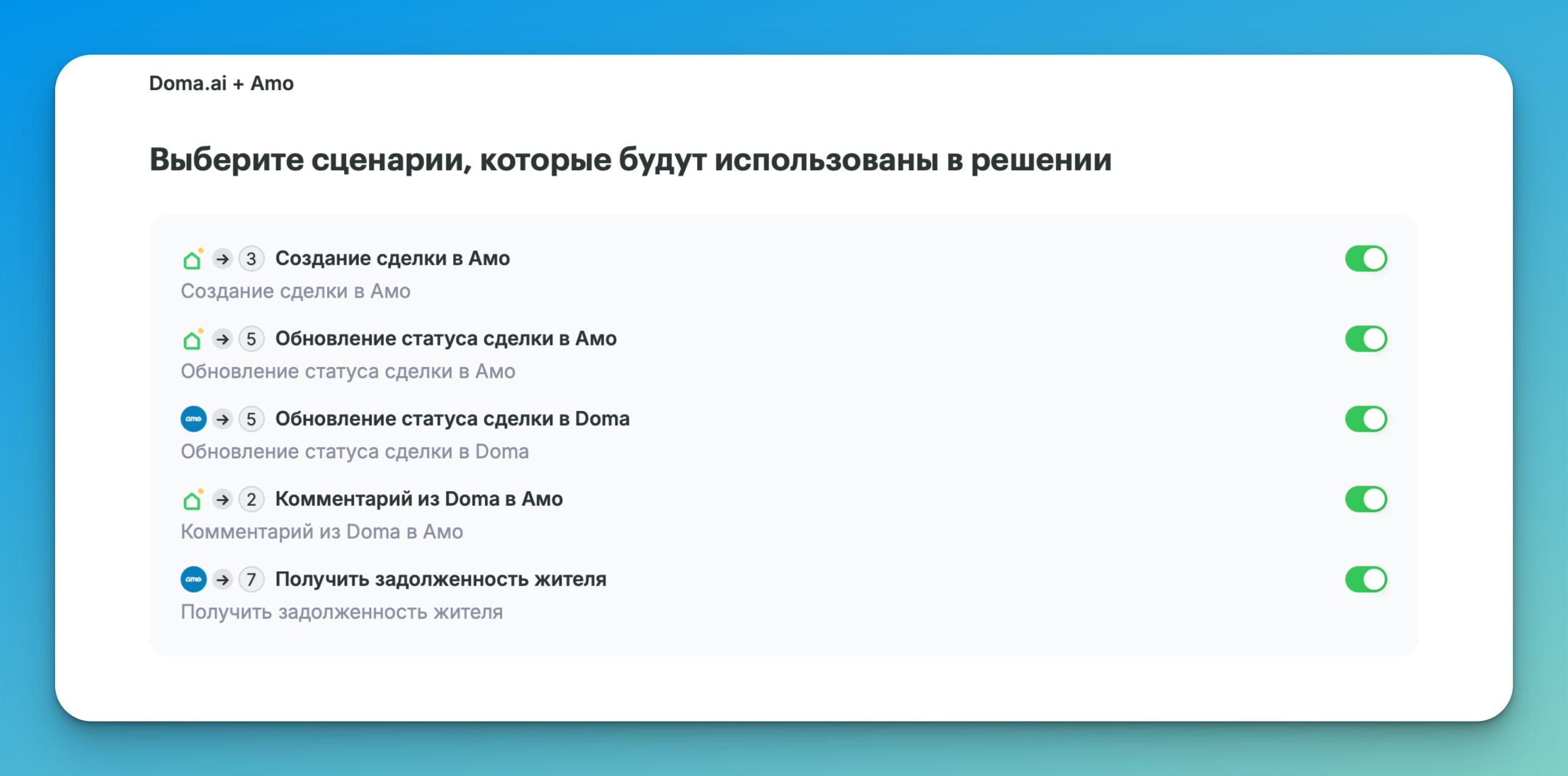 Мы собрали готовое решение в Альбато, которое связывает DOMA.AI и amoCRM без программистов. Интеграция настраивается за 10-20 минут.