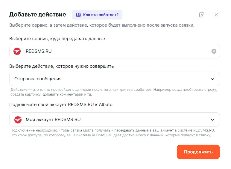 Для этого нам потребуется, чтобы оба сервиса были подключены к Albato. Инструкции, по которым настраивается подключение GetCourse и REDSMS к Albato вы найдете по ссылкам ниже:
