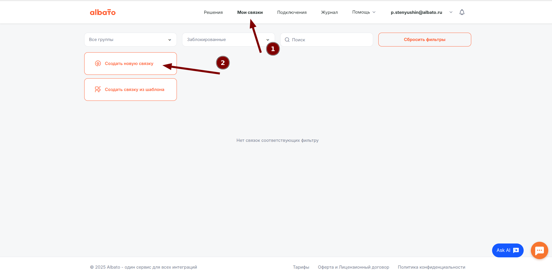Действия — что делает Albato после запуска связки. Также действия позволяют передавать данные в другие сервисы и системы.