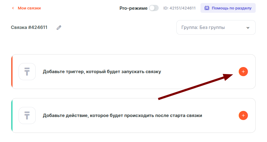 В открывшемся окне выберите событие, которое будет запускать связку.