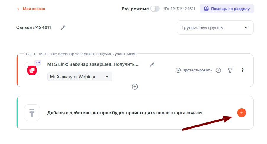 • При каком событии запустится связка – Вебинар завершен. Получить участников