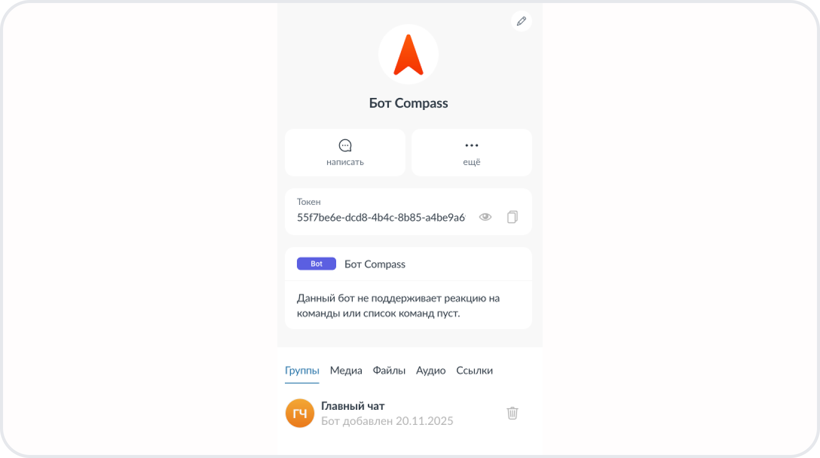 Важно: токен — это «ключ» к действиям от имени бота. Храните его в секрете и не передавайте публично.