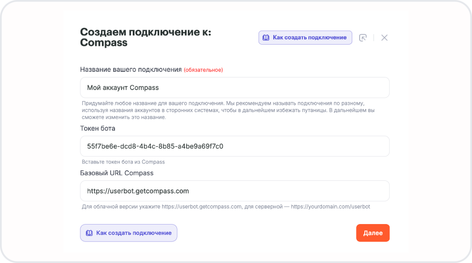 • использовать обратную интеграцию (чтобы события из Compass запускали автоматизации в Albato).