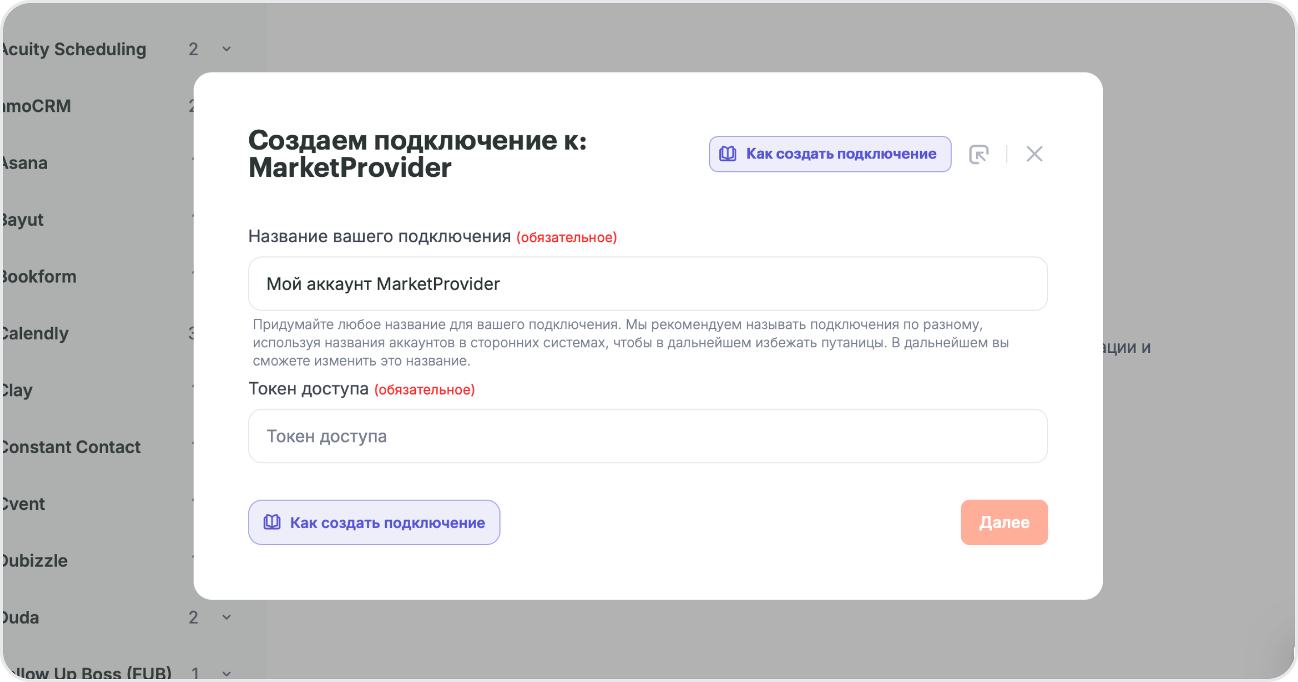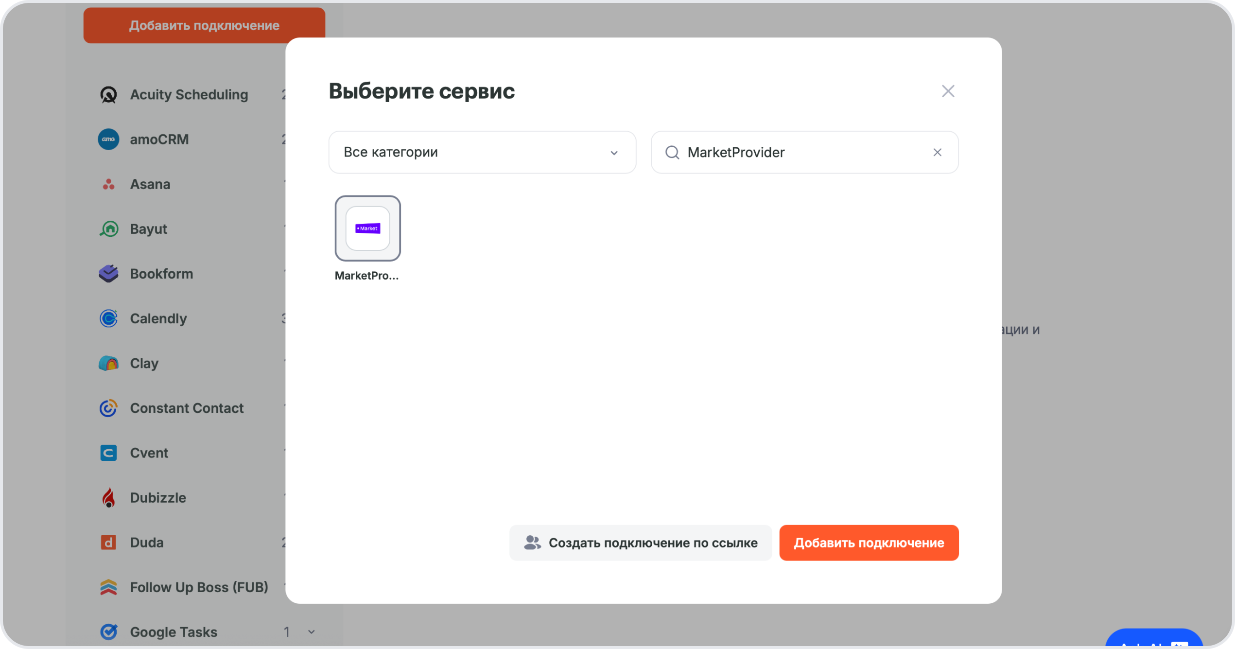 Чтобы настроить интеграцию с Market Provider, подключите сервис к Альбато.