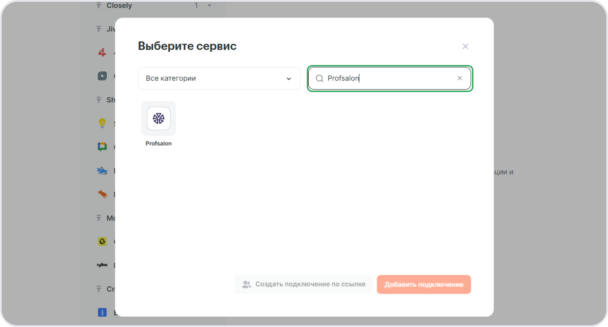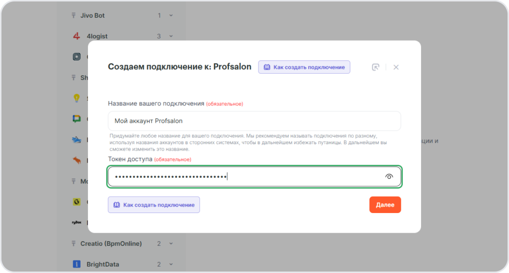 Чтобы настроить интеграцию с Profsalon, подключите сервис к Альбато.