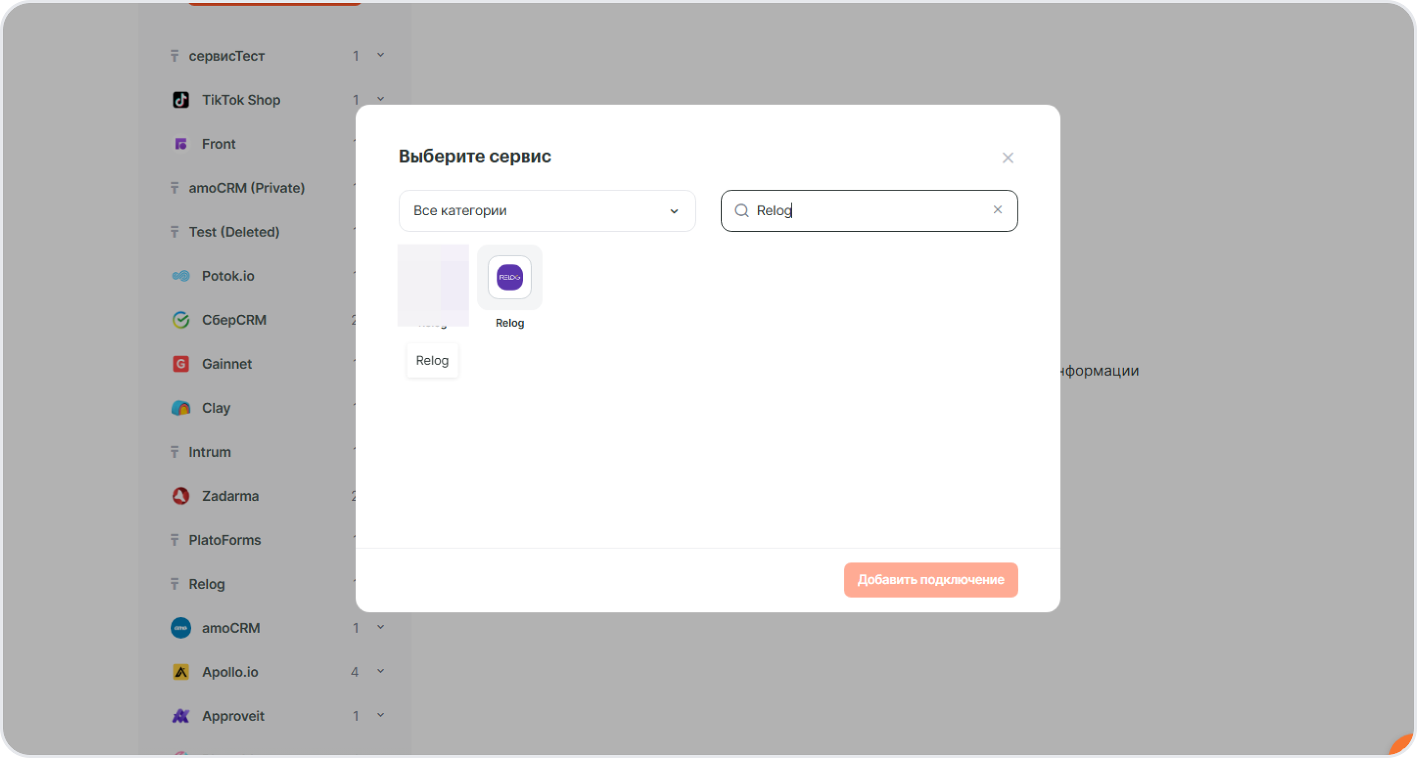 Чтобы настроить интеграцию с Relog, подключите сервис к Альбато.